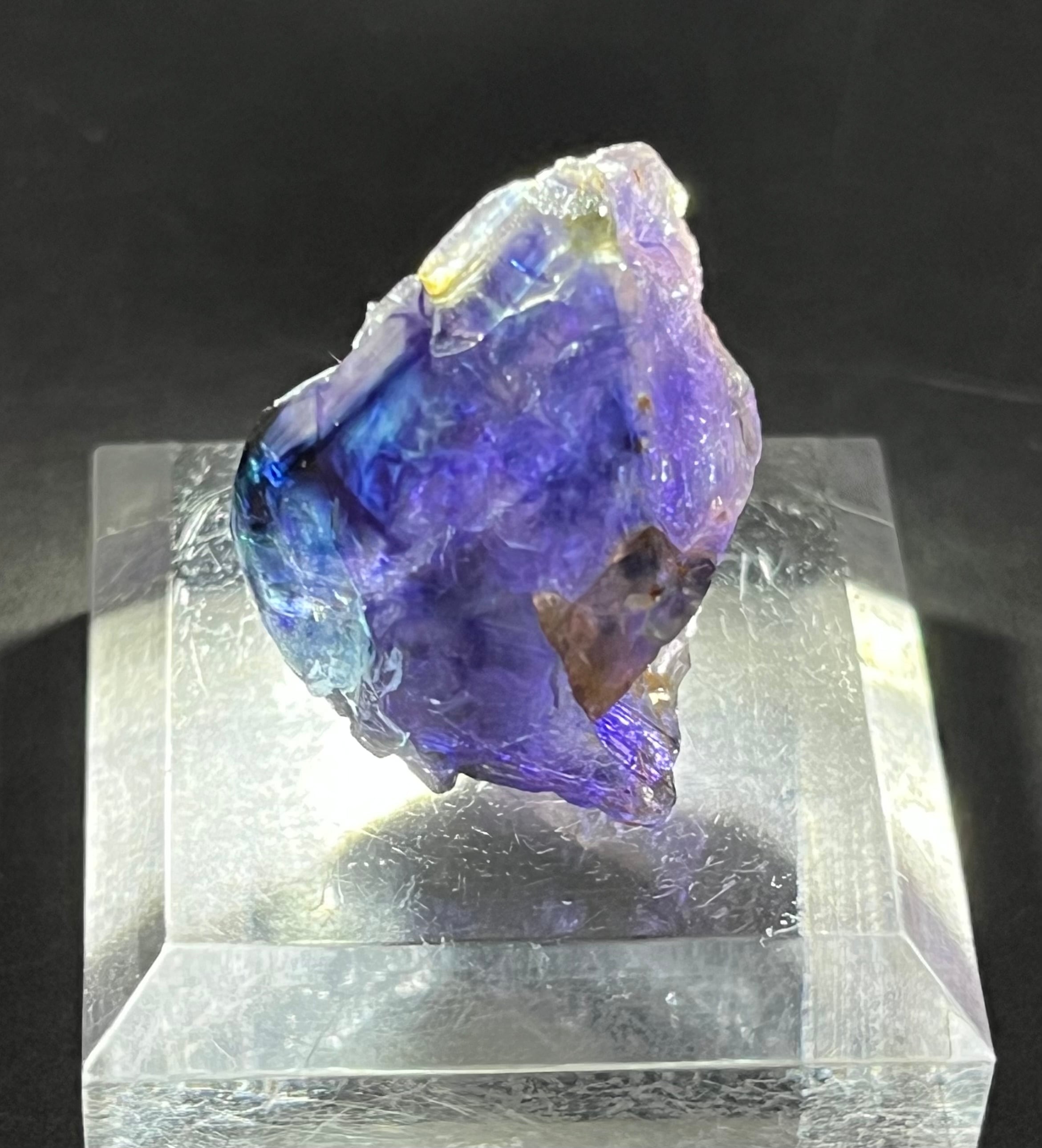 肉眼でも見えますが特に白色LEDライトを当てるとパープル、ブルー、グリーンのトリカラーがよりわかりやすく見えます。