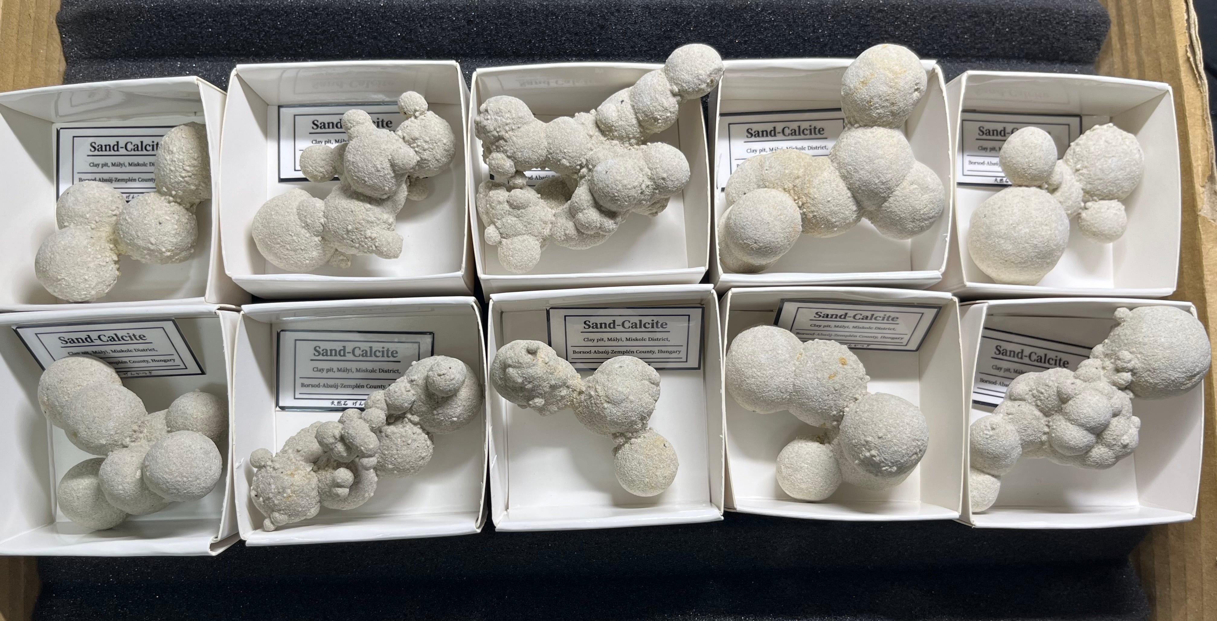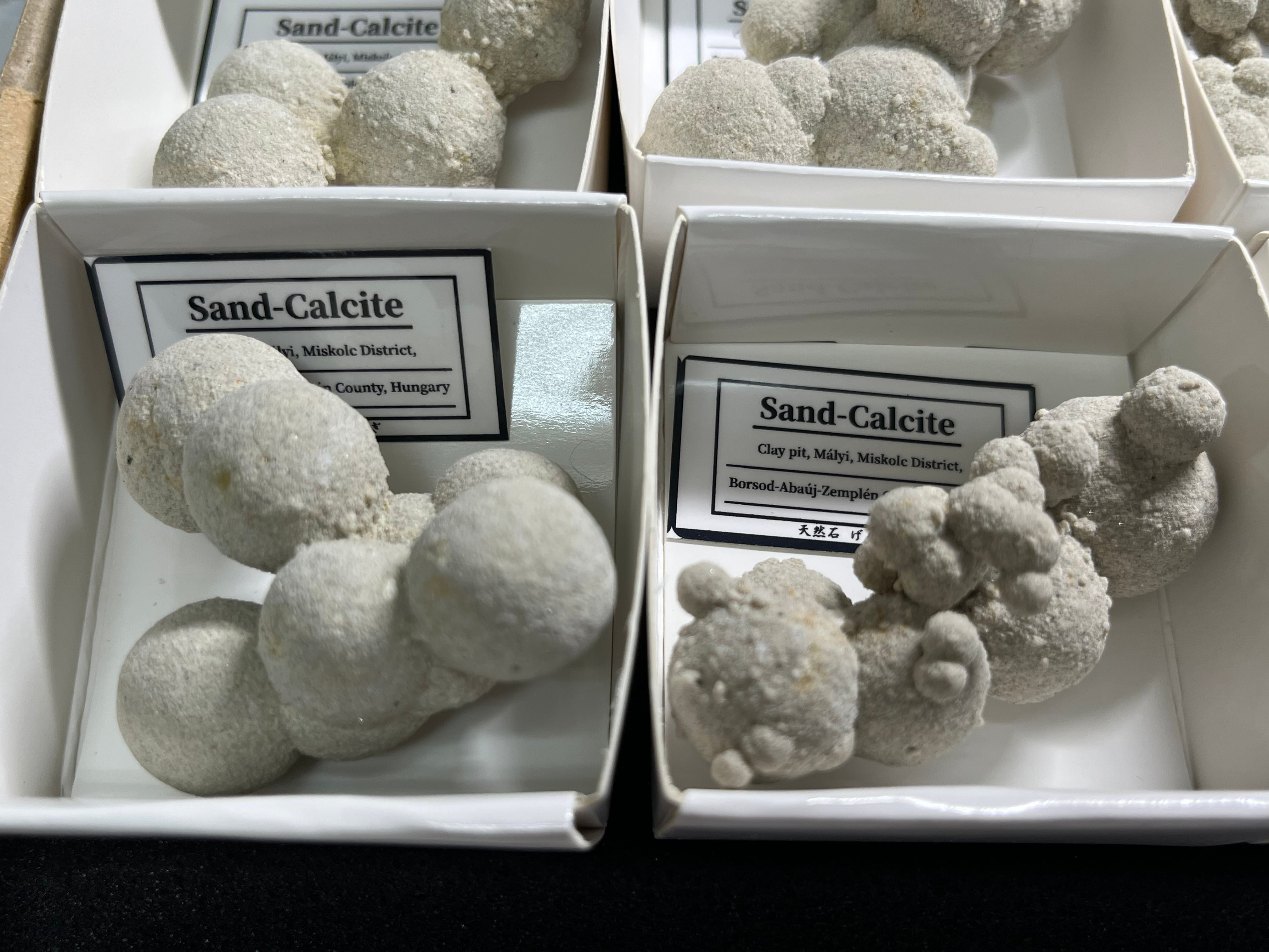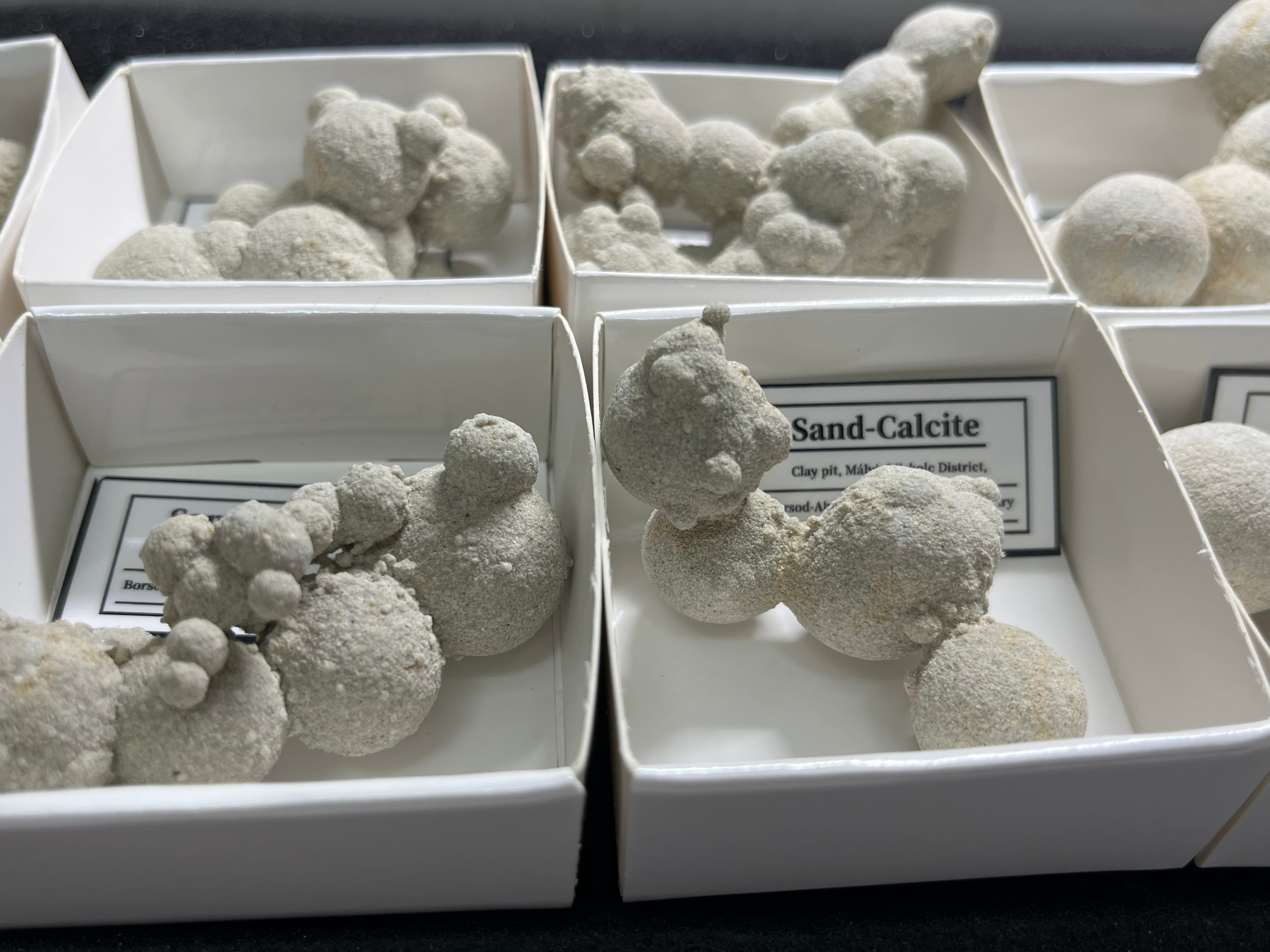 砂粒を巻き込みながら球状に結晶したカルサイトが連なった非常にユニークなハンガリー産のサンドカルサイトです。