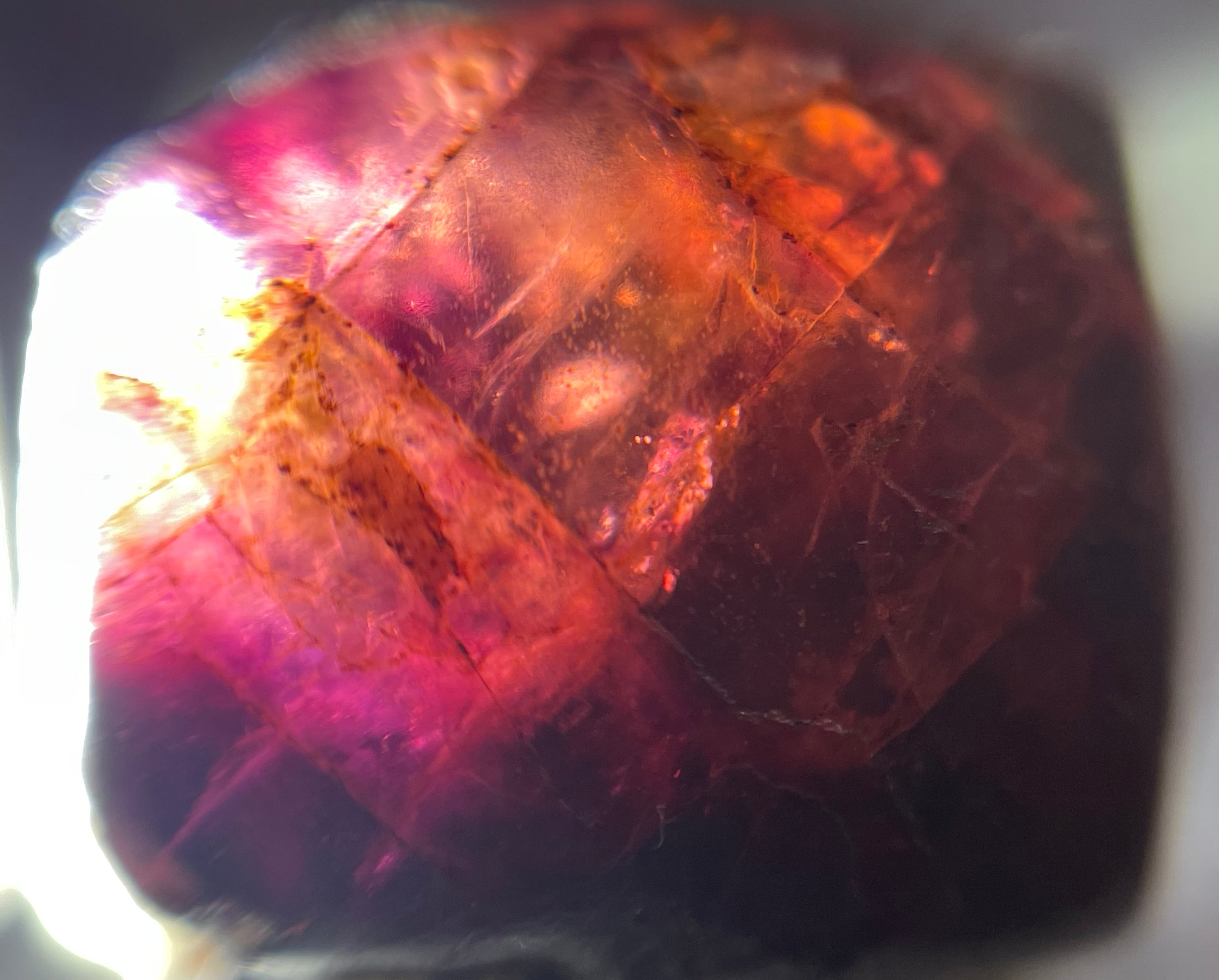 白色LEDライトを当てる向きによってオレンジ色やダークチェリーカラーに見えます。