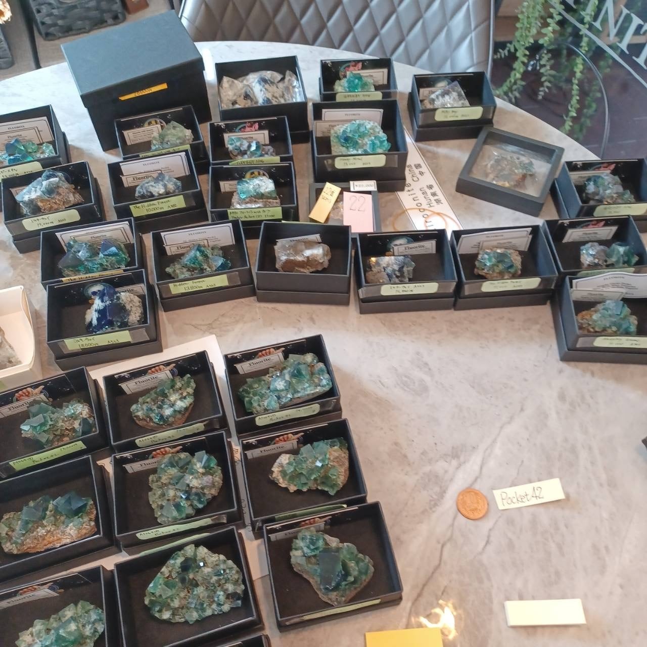 今回、くじ引きのみでのご用意となるPocket 42フローライトのクラスターを計31点、その他のUKフローライトクラスターを21点、ツインズ2個セット、3個セットは計8点ほど入っております。