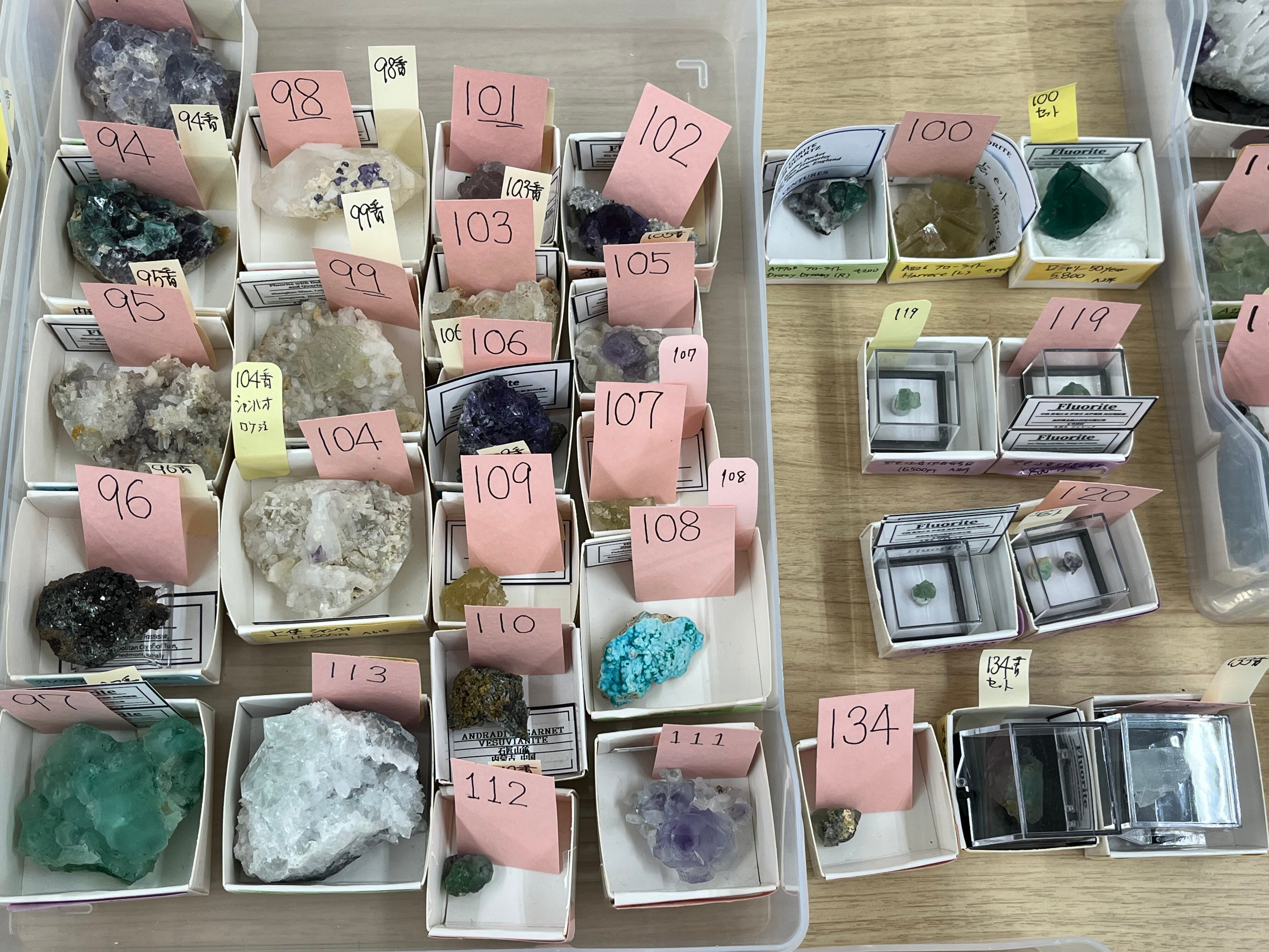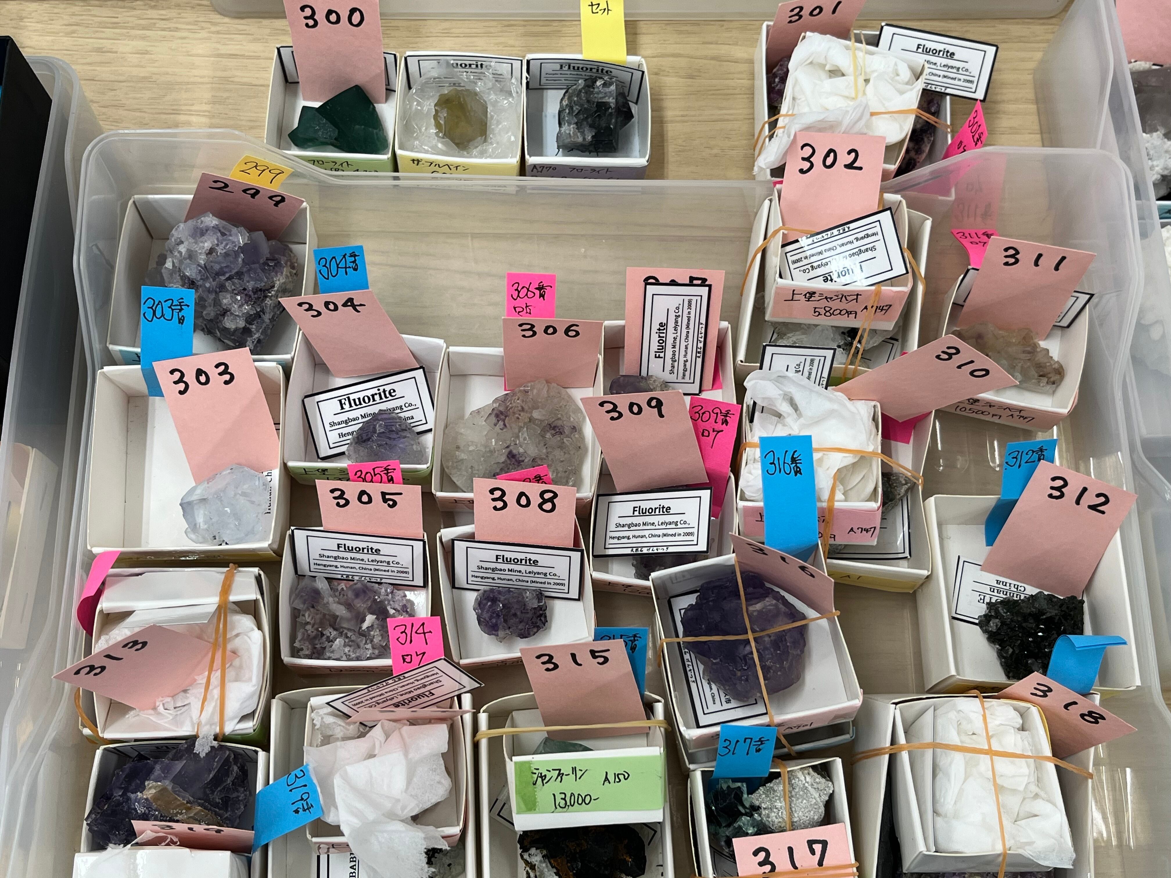 今回、くじ引きのみでのご用意となるPocket 42フローライトのクラスターを計31点、その他のUKフローライトクラスターを21点、ツインズ2個セット、3個セットは計8点ほど入っております。