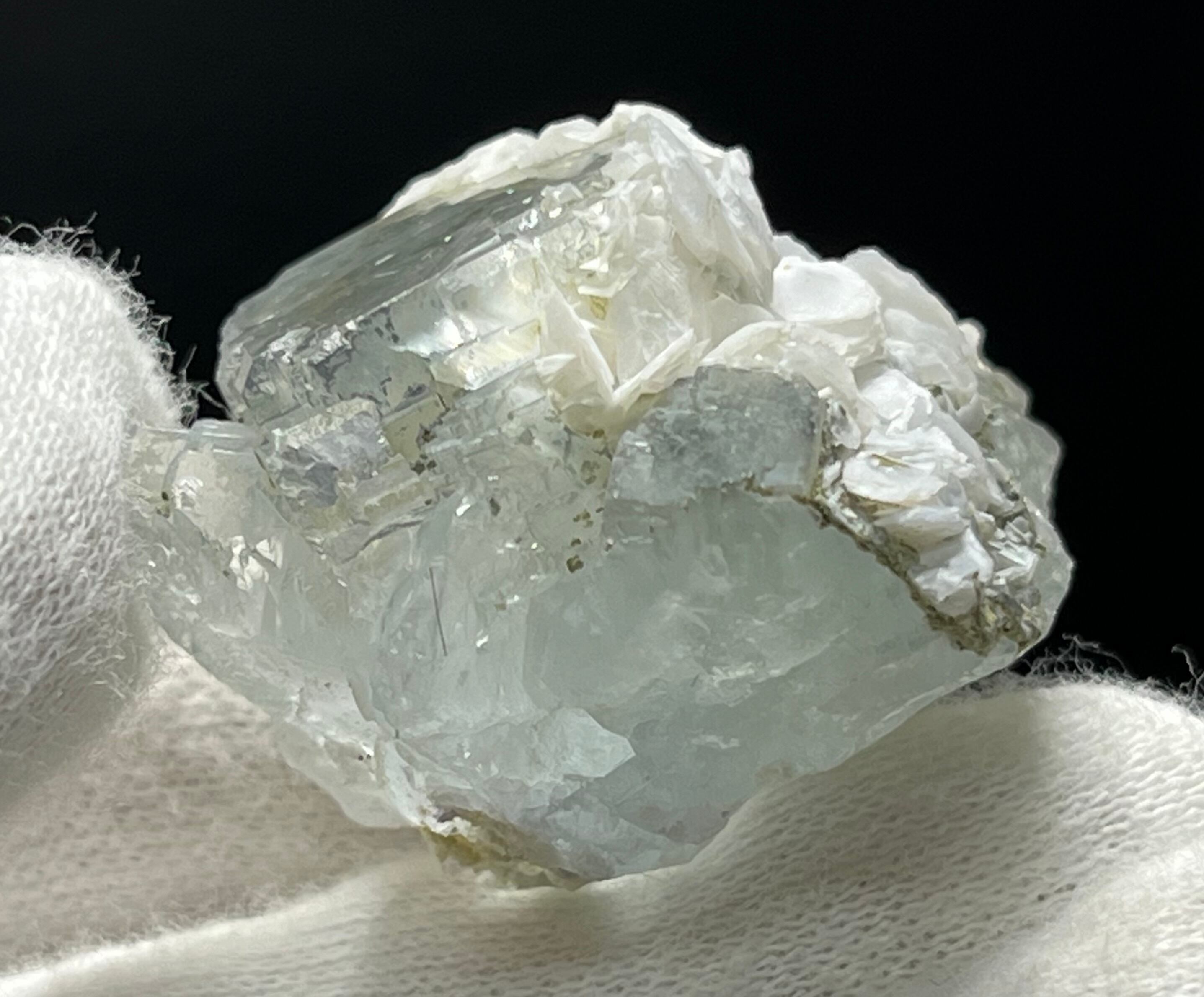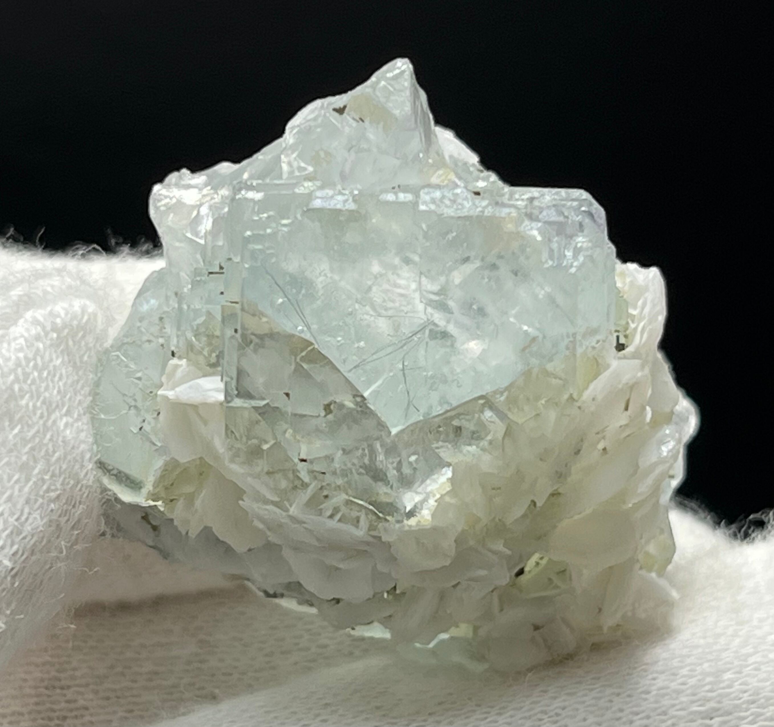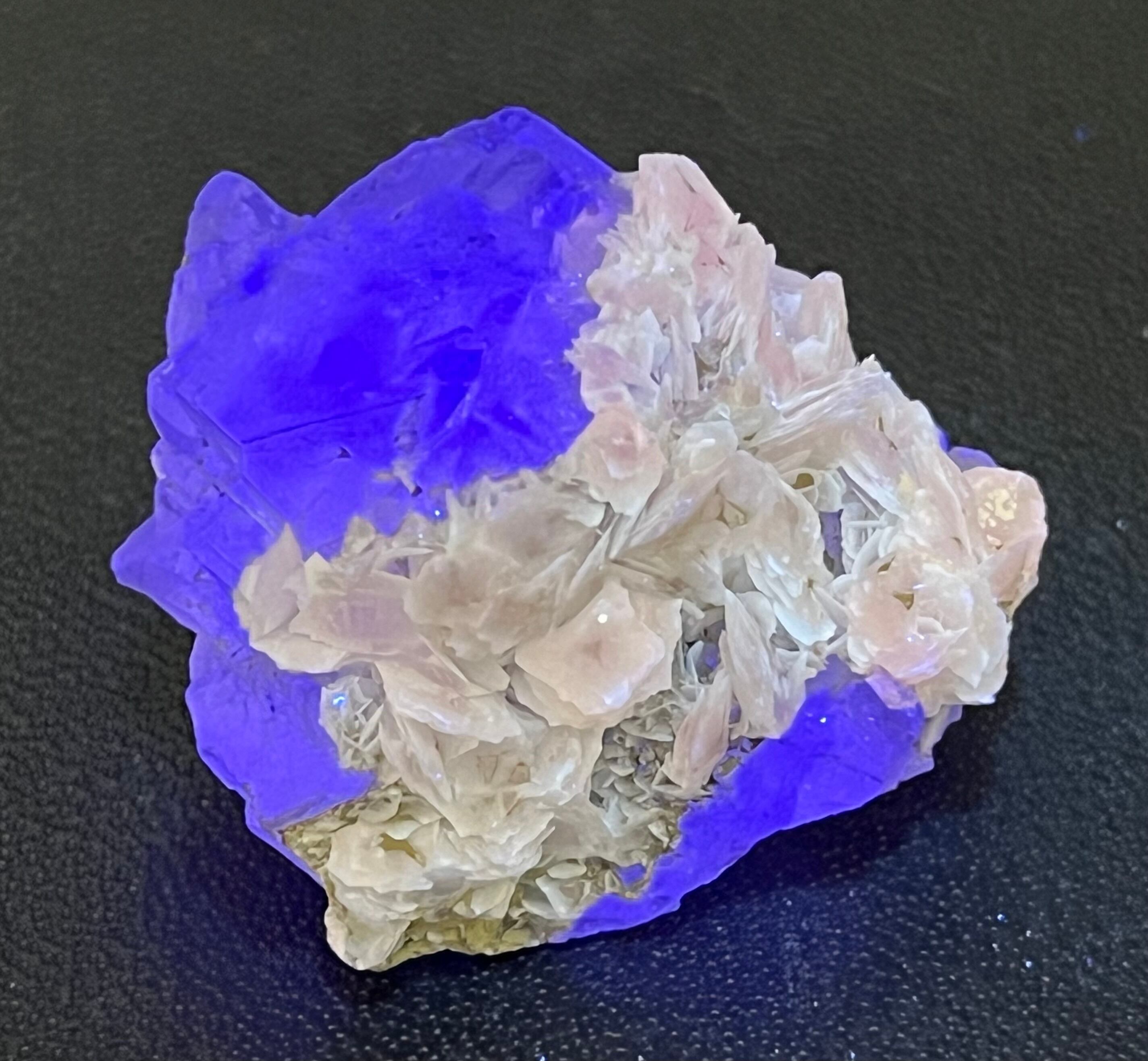 カラーとしては爽やかなクリアペイルグリーンで、裏側にブラックライトでピンク色の蛍光を示すカルサイトを複数伴っております。