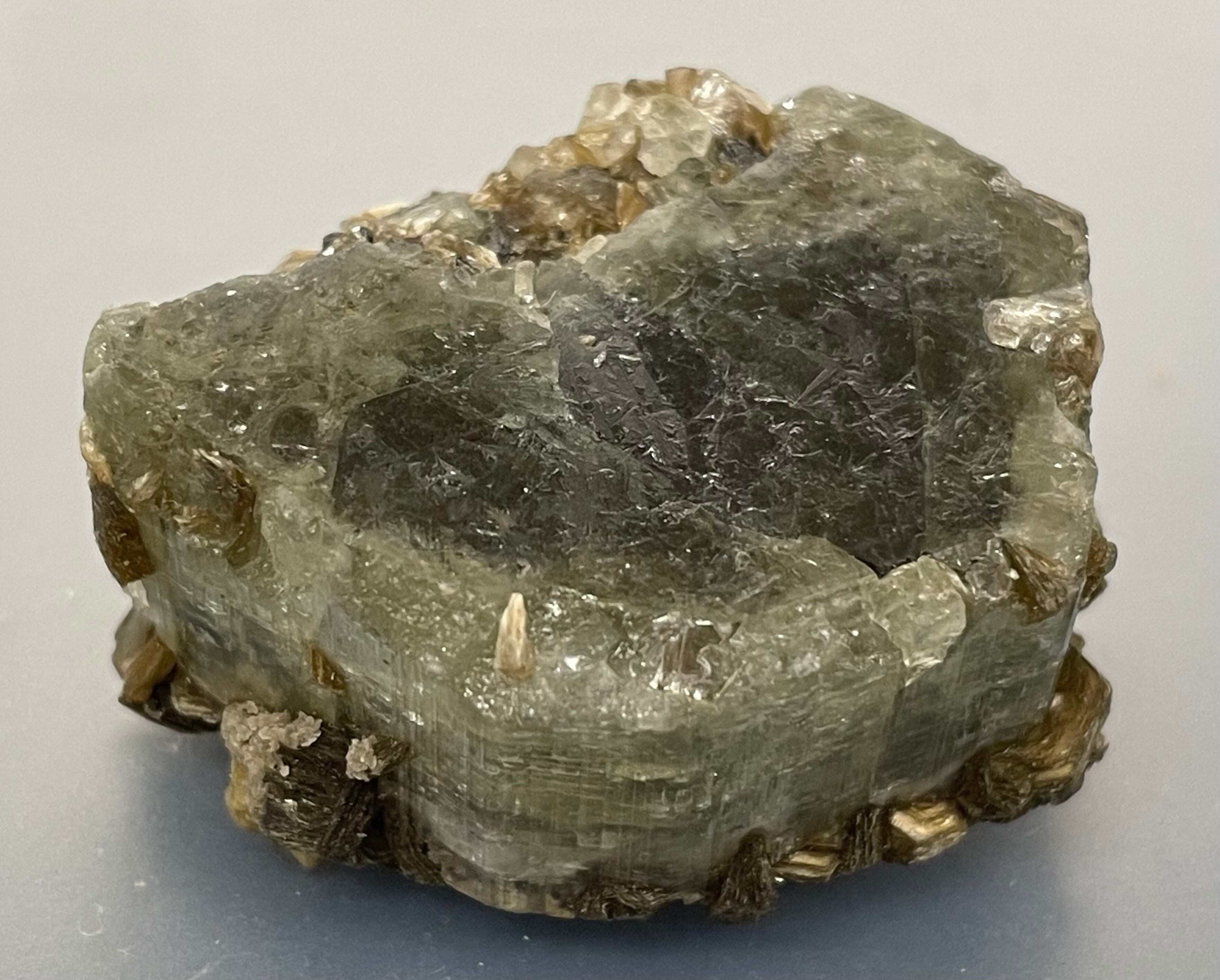 こちらは横幅34mmのどっしりとしたアパタイトにマイカがびっしりと結晶していてとても存在感があります。